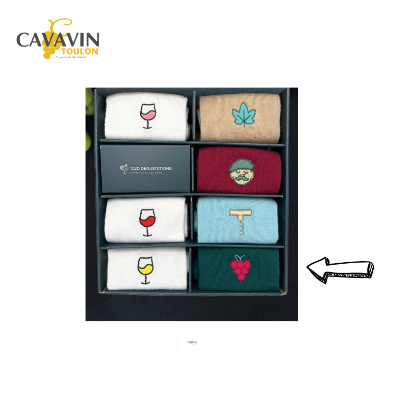 Les Chaussettes grappe de raisin font parties de la collection signature de 1020 dégustations "Le French art de boire". Constituées de 75% de fibre de bambou, elles allient confort et style.
